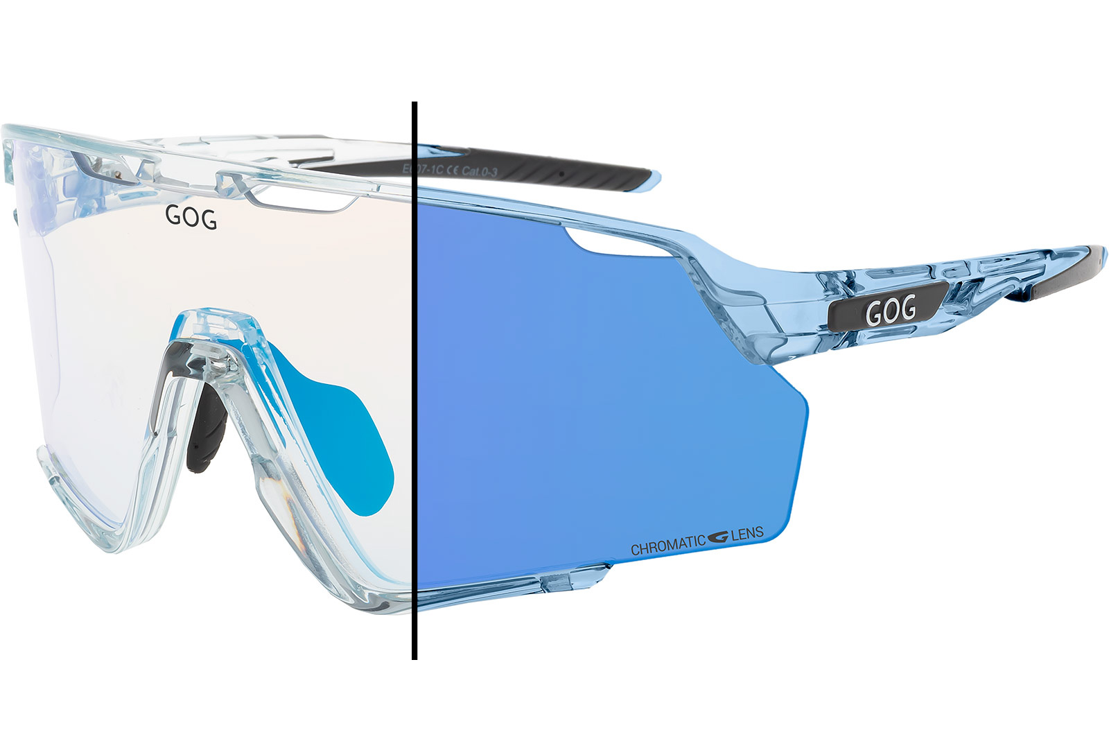 GOG PROMETHEUS – E607-1C to model dla sportowców, którzy wymagają jednych okularów do wielu warunków świetlnych, bez kompromisów w zakresie komfortu i ochrony.